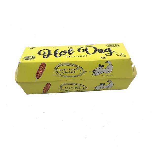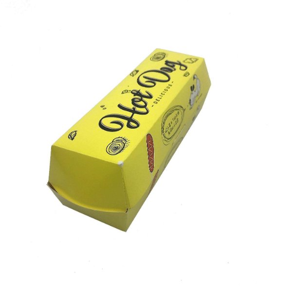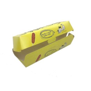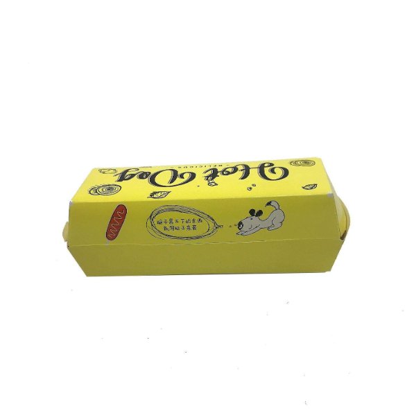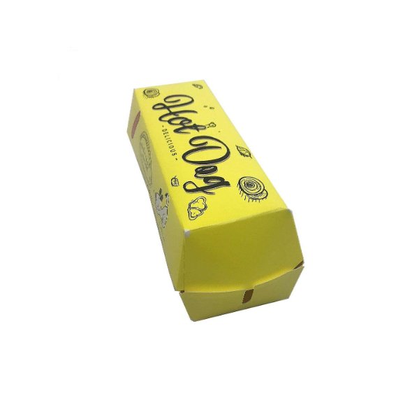 Custom Design Yellow Color Takeaway Packaging Biodegradable Snack Box with logo Food Grade Paper Paperboard Hot Dog Tray