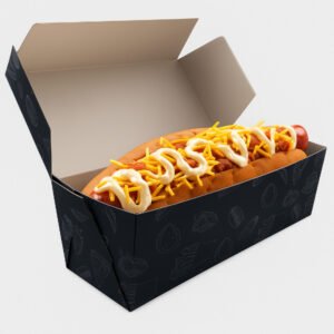 Custom Disposable Kraft Paper Food Box for Hot Dog and Sandwich Packaging Tray Takeaway Fast Food Container