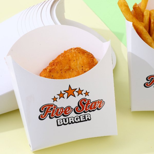 Custom Printed Greaseproof Paper French Fries Box Crepes UV Coating & Matt Lamination for Sushi & Potato Chips Packaging