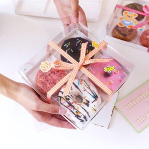 Custom Printed Wedding Packaging Boxes Puff Candy Donut Boxes Family Size Large Donut Treat Boxes with Ribbon