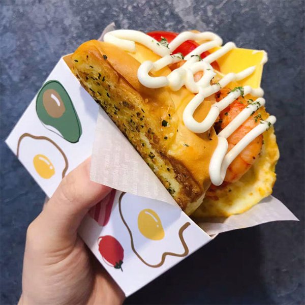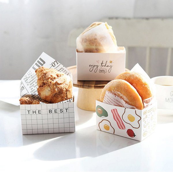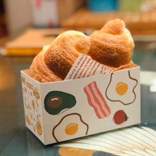 Customized Paper Food Container Printed Croissant Bread Puff Sandwich Packaging Box