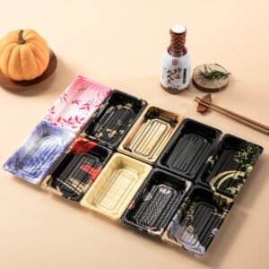 Wholesale Disposable Tableware Gold Meat Dessert Fruit Seafood Salmon Sashimi Sushi Trays Sushi Box