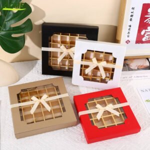 Wholesale Food Grade Biodegradable Rigid Boxes with Transparent Lid Luxury Packaging for Square Chocolate